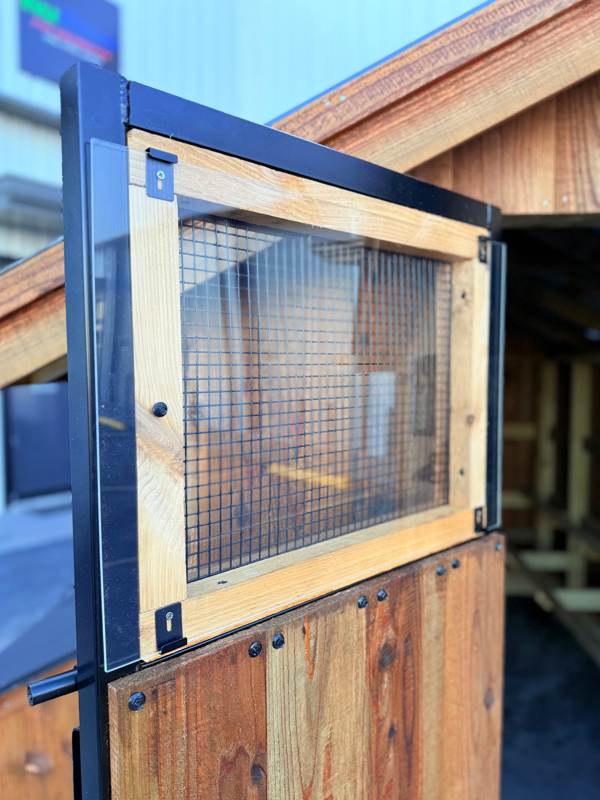 - Two windows with welded wire acrylic window backings on the coop end for protected light and ventilation.